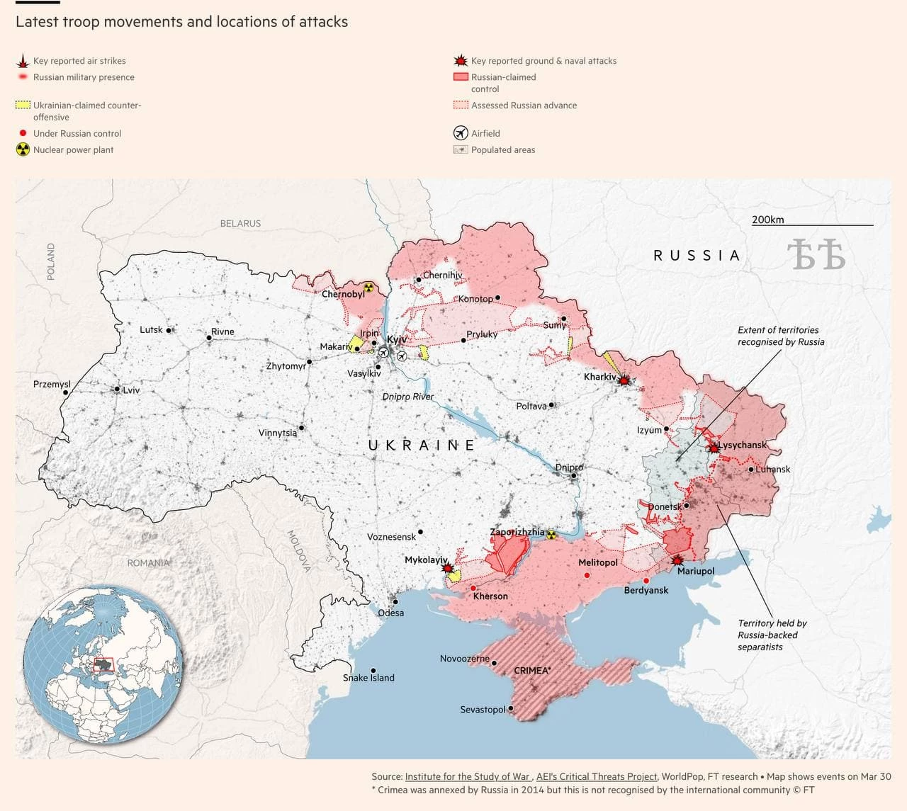 Обновленная карта боевых действий по состоянию на 30 марта: