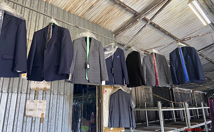 Среди открытых на рынке — точка с обувью, мужскими костюмами и джинсами, постельным бельем, кухонной утварью, бытовой химией, нижним бельем, детскими рюкзаками.