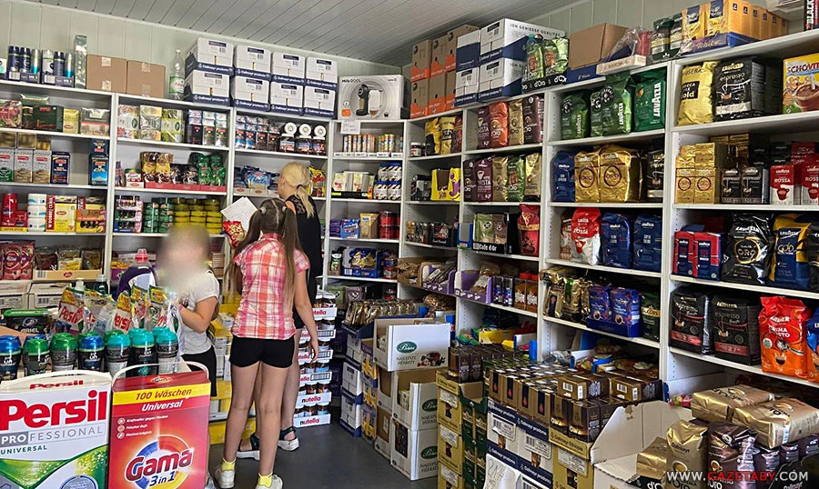 В маленьком магазинчике с бытовой химией и продуктами закупается женщина вместе с двумя маленькими дочками. В руках она держит белорусский паспорт, лист А4, в котором вычеркивает то, что уже купила.