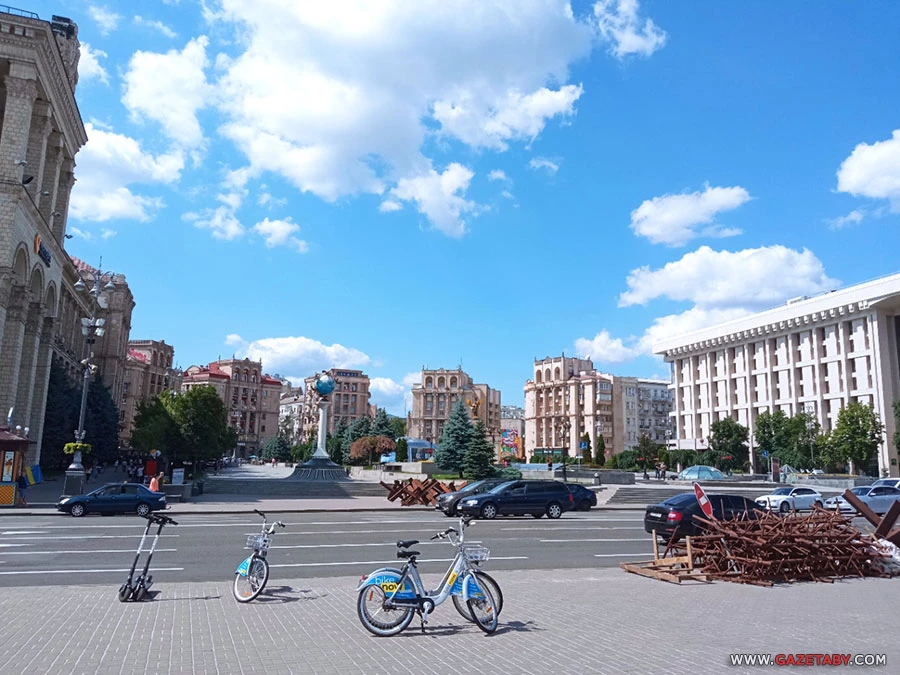 На дорогах Киева можно одновременно увидеть пафосные спорткары, кабриолеты, кареты скорой помощи с мигалками, военные бронированные машины, электросамокаты и велосипеды с туристического проката, бронированную машину саперов, везущую на обезвреживание боеприпасы.