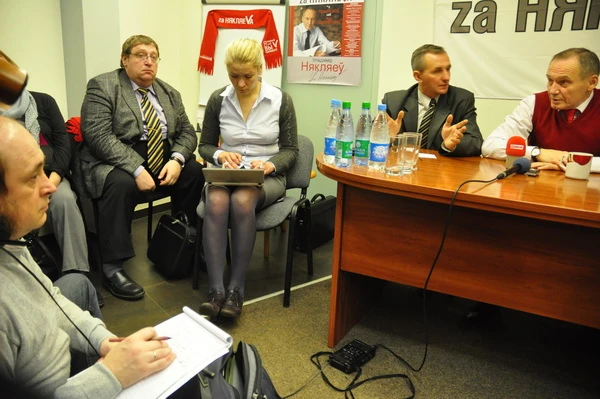 — Рекламировать себя на телеэкранах имеет возможность лишь один кандидат — действующий президент. Мы требуем выделить дополнительное время всем зарегистрированным кандидатам, а также рекомендовать редакциям государственных газет предоставить им равные возможности. Кроме того, наш штаб предлагает ЦИК пригласить на Всебелорусское собрание всех зарегистрированных кандидатов, чтобы на этом форуме они могли рассказать о своих программах развития Беларуси.