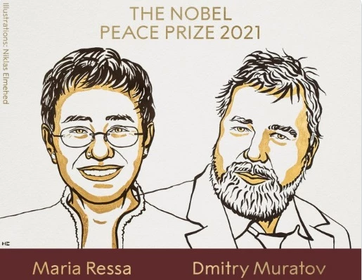 Норвежский нобелевский комитет присудил премию мира 2021 года сразу двум номинантам – главному редактору «Новой газеты»  Дмитрию Муратову и филиппинской журналистке Марии Рессе.