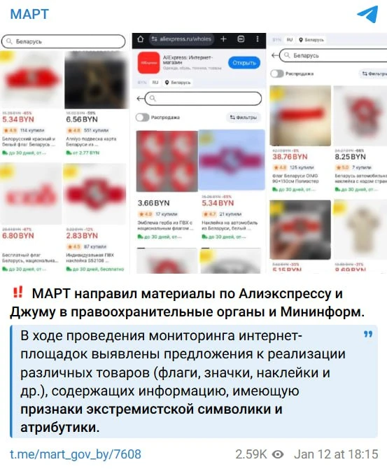 Министерство антимонопольного регулирования и торговли Беларуси обнаружило «экстремистскую символику» на популярных зарубежных интернет-площадках AliExpress и Joom.
