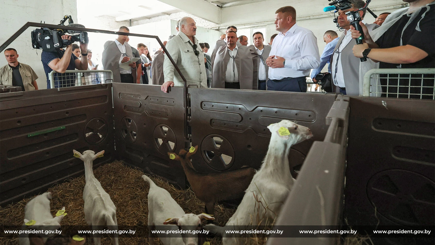 Правитель побывал с инспекцией на племенном заводе по выращиванию коз под Могилевом. Продегустировал продукцию, спросил о рентабельности, получил в подарок двух козочек — и тут же заявил, что нужно удвоить показатели к середине 2026 года. Заработать, «пока есть спрос».