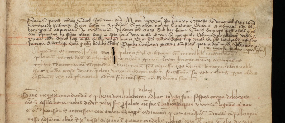 Запіс пра Грунвальдскую бітву з «Гадавой кнігі» абацтва Святога Урбана. Фота: Luzern, Staatsarchiv, KU 626