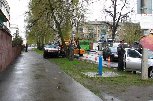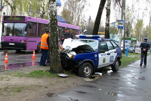Аварыя здарылася ў суботу ў Бабруйску. Міліцэйскі аўтамабіль вылецеў на сустрэчную паласу дарогі і ўрэзаўся ў дрэва. Машына спынілася за некалькі метраў ад аўтобуснага прыпынку.