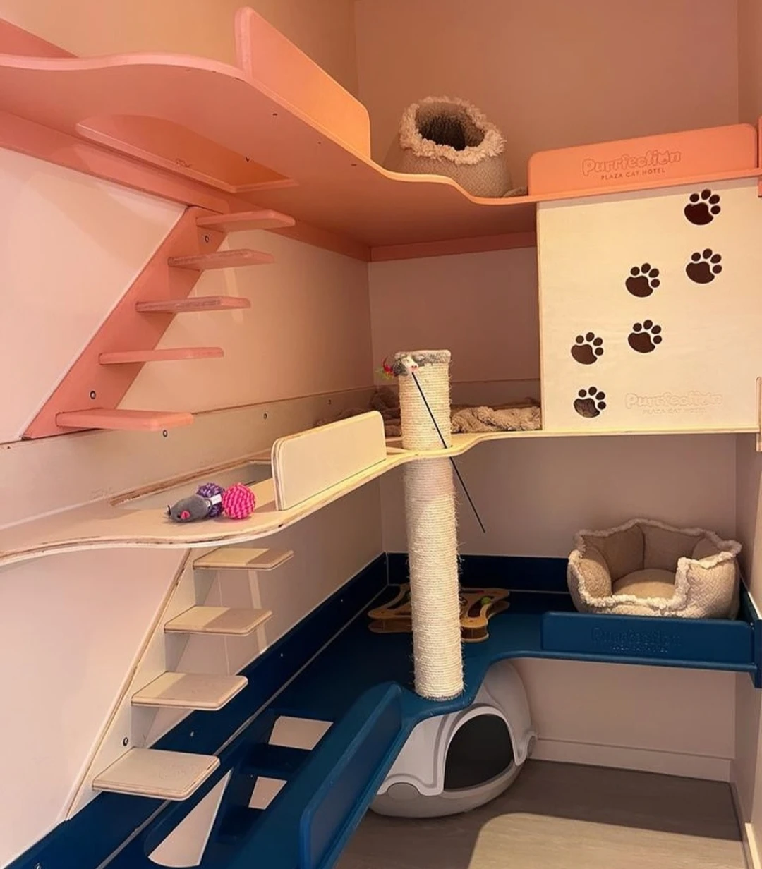 Помимо гастрономических изысков, отели уделяют огромное внимание физическому и ментальному благополучию пушистых гостей. Каждый номер оборудован вертикальными деревьями для лазанья, многоуровневыми полками, мягкими гамаками и многочисленными когтеточками. Коты могут свободно перемещаться, прыгать, точить когти, имитируя охоту, или просто наблюдать за миром с высоты.
