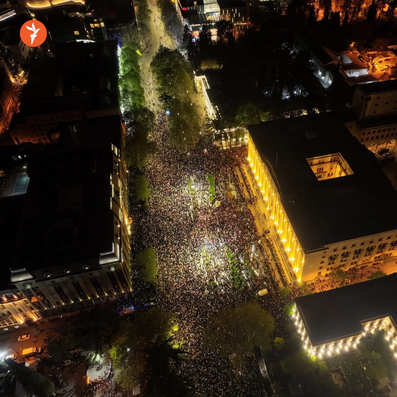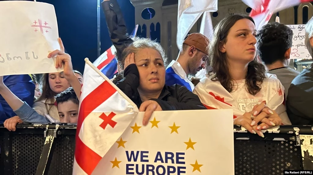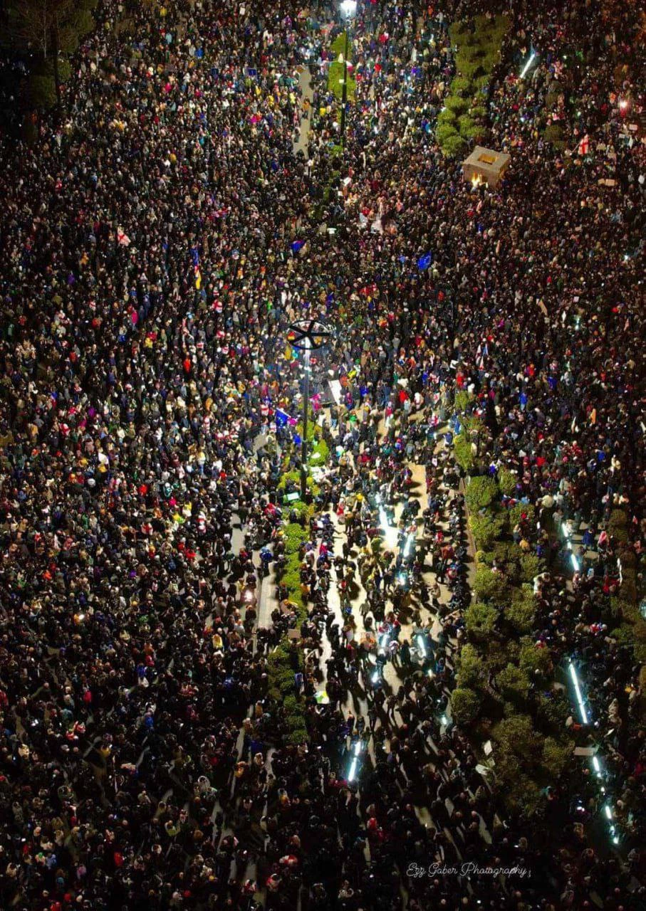 Перед парламентом Грузии и на прилегающих улицах везде протестующие. Люди продолжают идти на акцию.