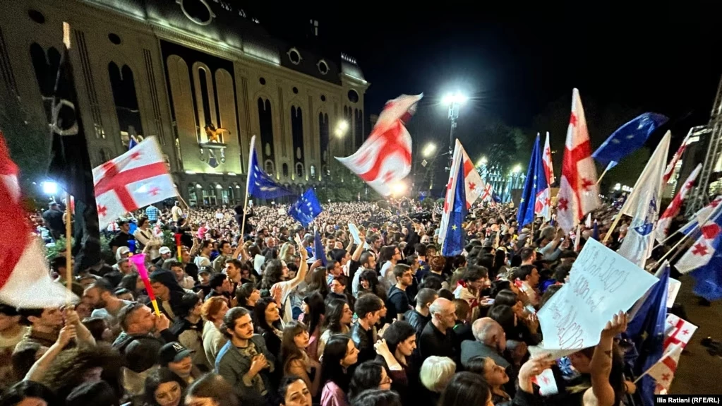 Третья ночь протестов в Тбилиси. Парламент Грузии утвердил закон об «иноагентах» в первом чтении, на улицу вышли тысячи человек