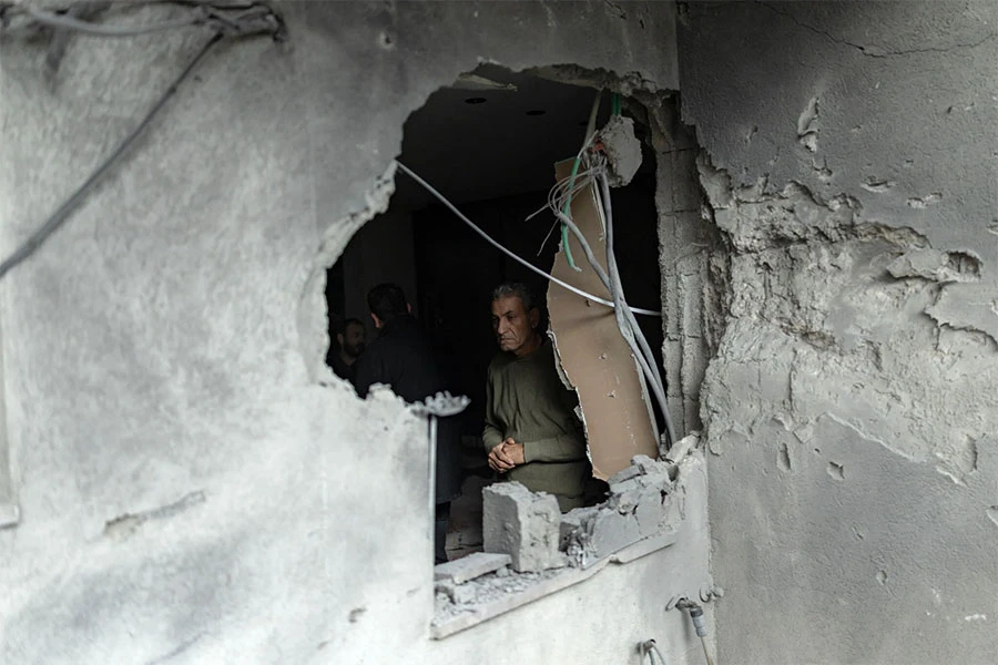 Житель осматривает повреждения дома после ракетного удара в арабо-израильском городе Кафр-Касим 26 марта 2026 года. Фото: Илия Ефимович, AFP