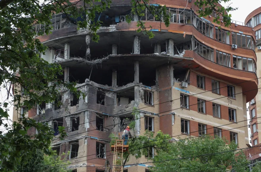 Фотофакт: бизнес-центр в Одессе, поврежденный российской ракетой.