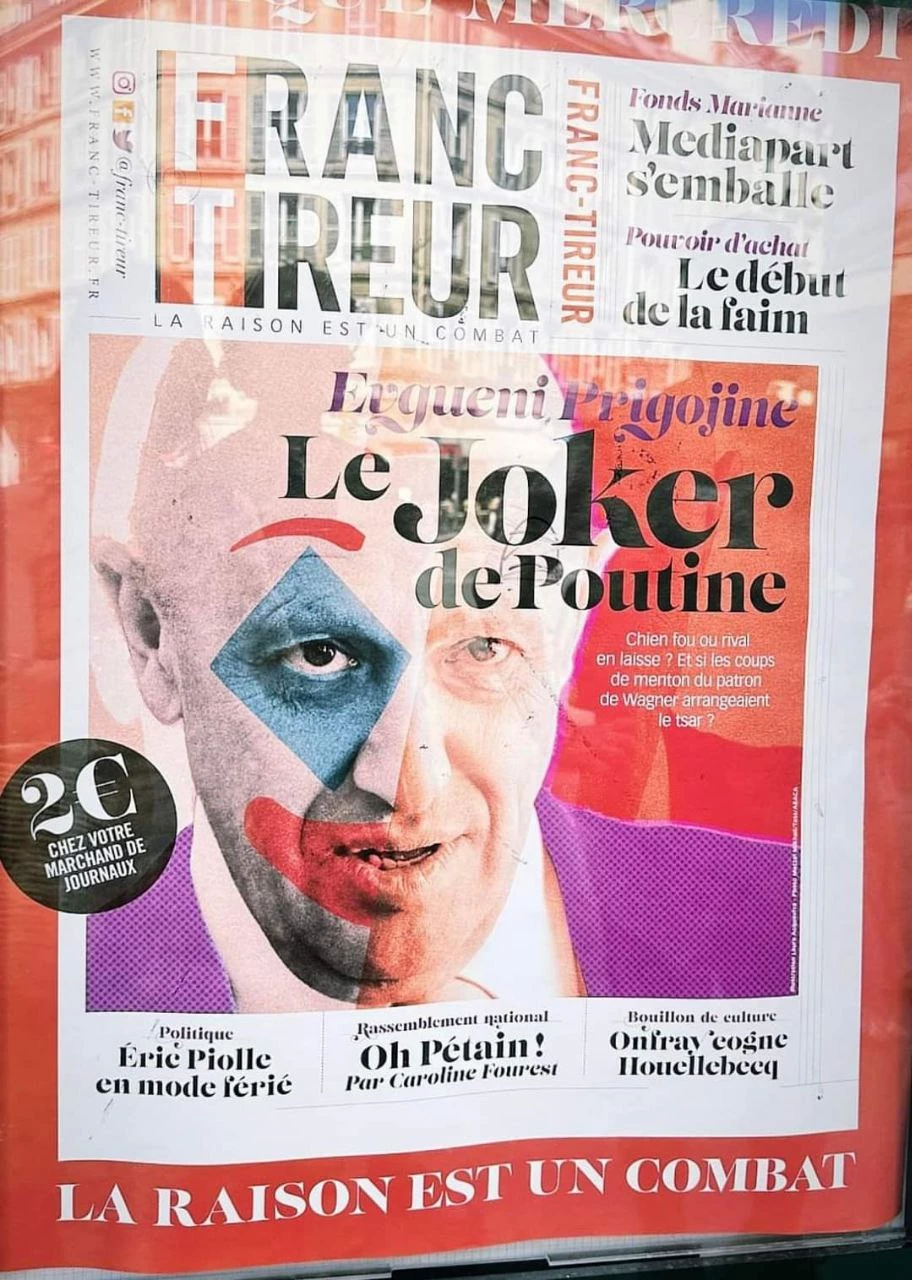 Так выглядит свежий номер французского издания Franc-Tireur с заголовком на первой полосе: «Евгений Пригожин – Джокер Путина».