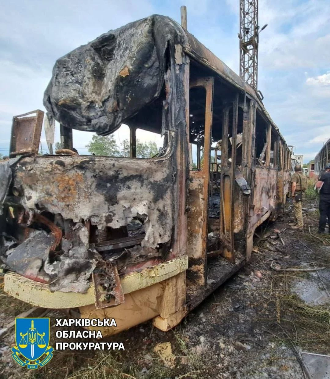 Харьковская областная прокуратура опубликовала фото последствий вечернего обстрела города. В Салтовском районе повреждено трамвайное депо, а в гаражном кооперативе на площади 100 кв. м возник пожар.