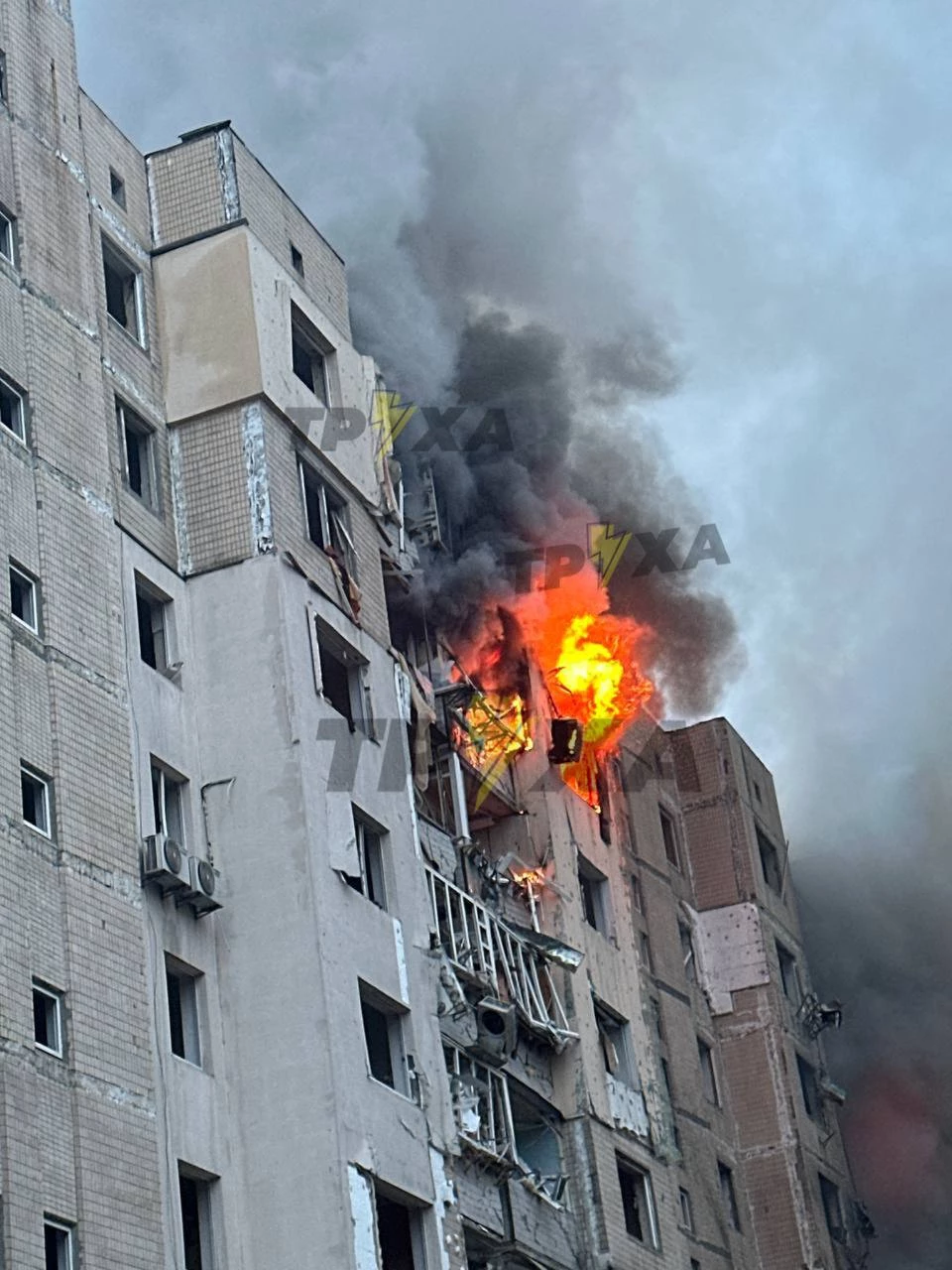 Кадры пожара в доме на Соломенке в Киеве после прилета: