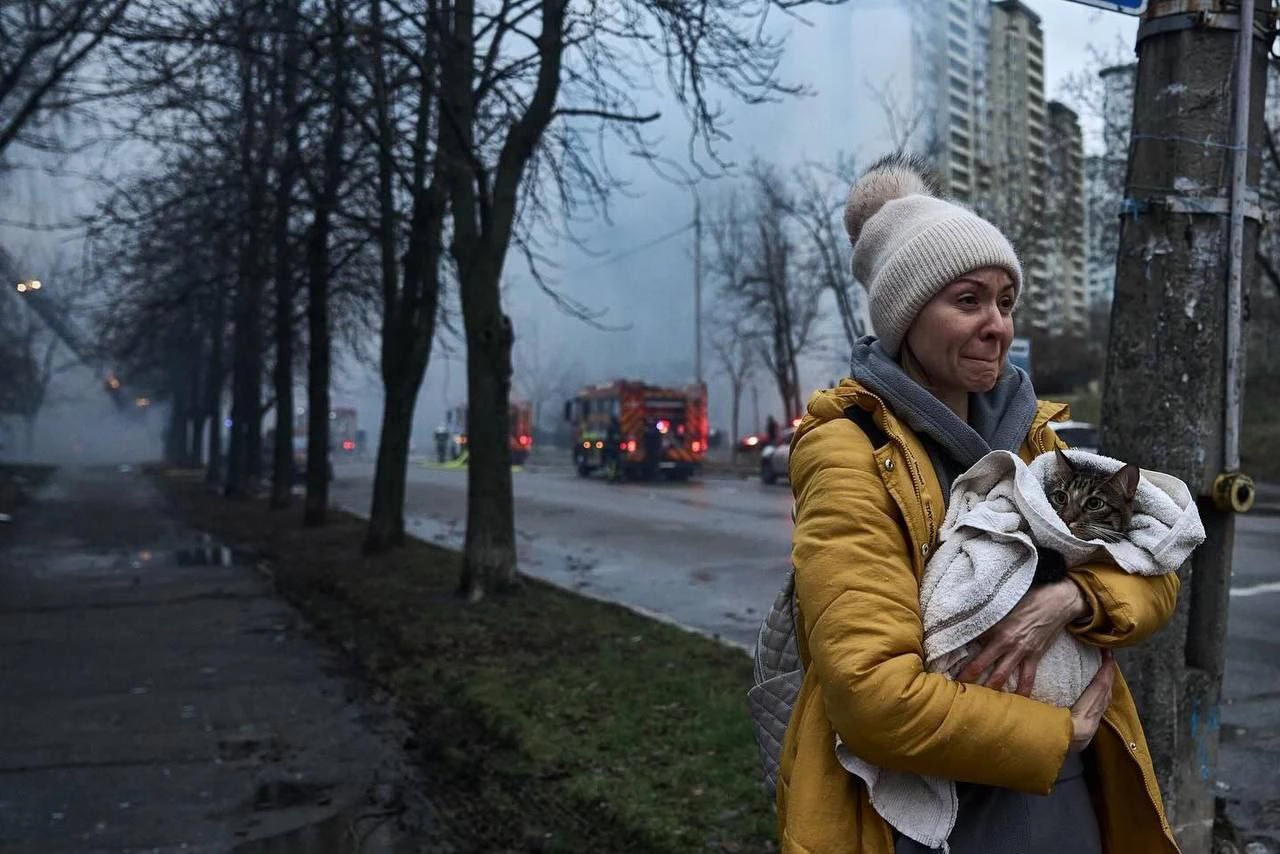 Видеофакт: в Соломенском районе Киева спасатели вынесли из обстрелянного дома попугаев и кота – хозяйка была очень рада их видеть.