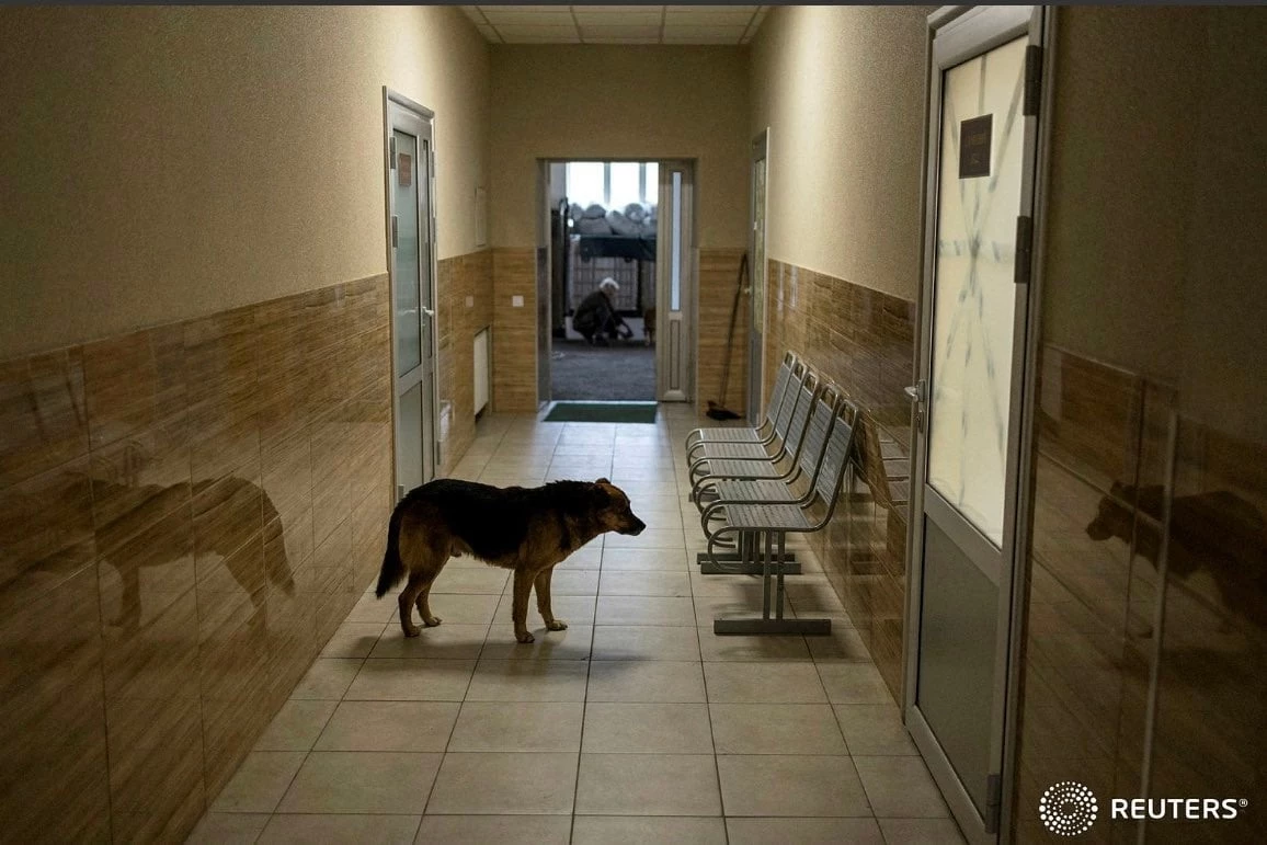 Краматорск. Собака ждет своего хозяина-солдата, которого оперируют после ранения на фронте.