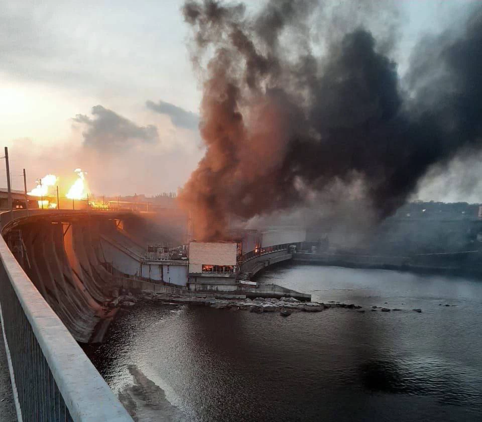 Глава «Укргидроэнерго» заявил, что ДнепроГЭС, по которой было два прямых попадания, остановлена из-за повреждений и пожара: «На сегодняшний день есть то, что мы теряем станцию».