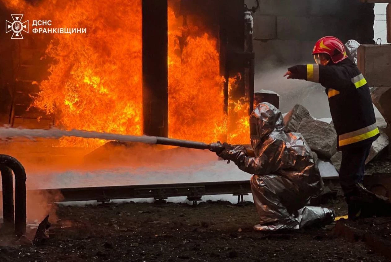 А это фотофакт последствий атаки на объект критической инфраструктуры в Ивано-Франковской области. Там пострадали два человека.