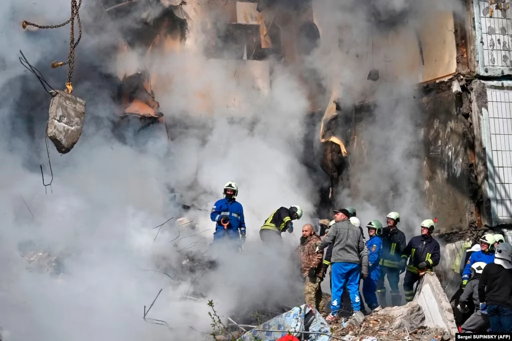 Глава администрации Черкасской области Игорь Табурец сообщил, что в Умани в результате попадания российской ракеты – или обломков сбитой ракеты – в жилую 9-этажку убиты четверо и ранены 17 человек.