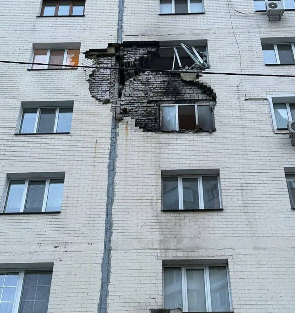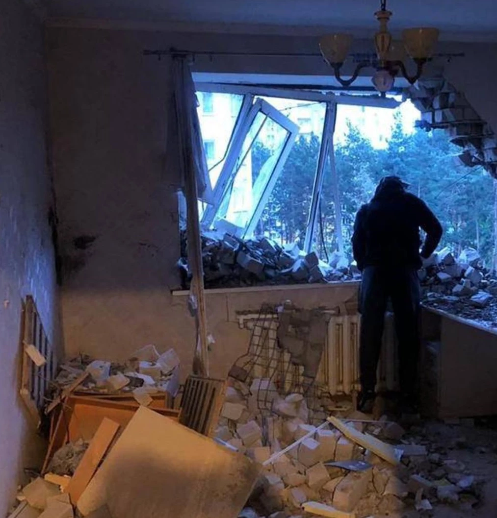 В городе Украинка к югу от Киева обломки ракеты попали в жилой дом. Глава полиции Киевской области Андрей Небитов опубликовал соответствующие кадры.