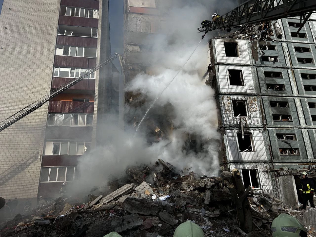 Глава администрации Черкасской области Игорь Табурец сообщил, что в Умани в результате попадания российской ракеты – или обломков сбитой ракеты – в жилую 9-этажку убиты четверо и ранены 17 человек.