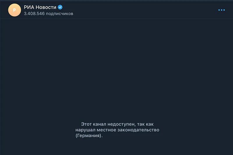 В Европе начали блокировать телеграм-каналы российских пропагандистских изданий и телеканалов. Известно о блокировке каналов РИА Новости, «Известий», России 1, «Российской газеты», «Первого канала», НТВ и других ресурсов, обслуживающих интересы Кремля.