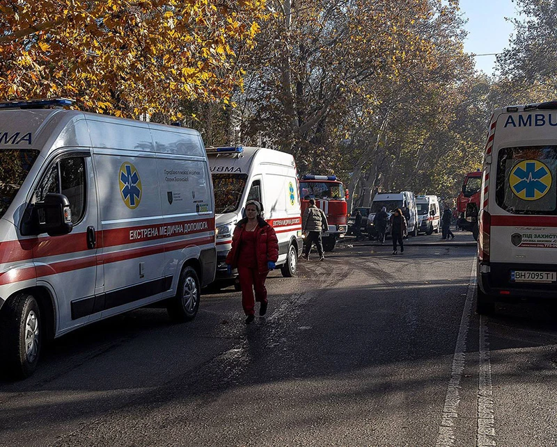 Пресс-служба Владимира Зеленского опубликовала фото, иллюстрирующие будни украинских медиков, спасающих военных и гражданских под обстрелами, во время отключения электроэнергии и под звуки сирен воздушной тревоги.