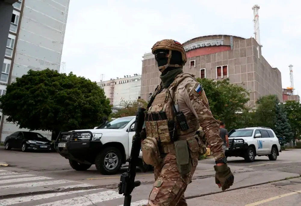 Фотофакт: российский военнослужащий около Запорожской АЭС.