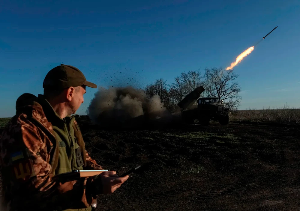 Фотофакт: служащий ВСУ ведет огонь из РСЗО «Град» в направлении российских войск в Донецкой области.