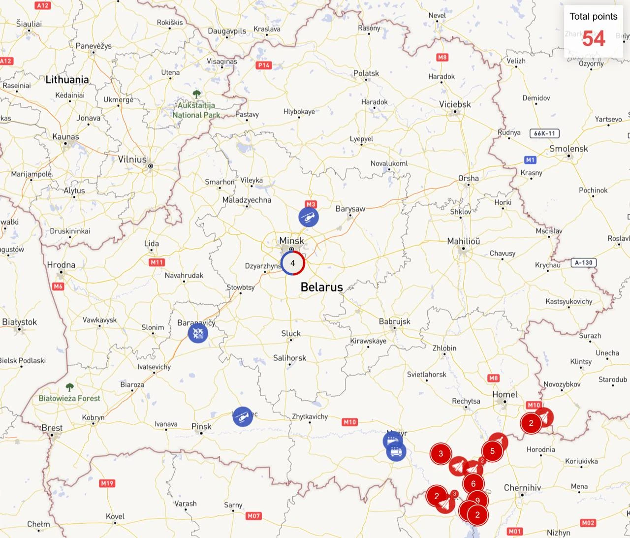 Дроны заходили из Брянской области, двигались курсом на Полесский заповедник, Комарин, Лоев, Гдень, Наровлю, Брагин, Асаревичи и проходили через «беларуский коридор».