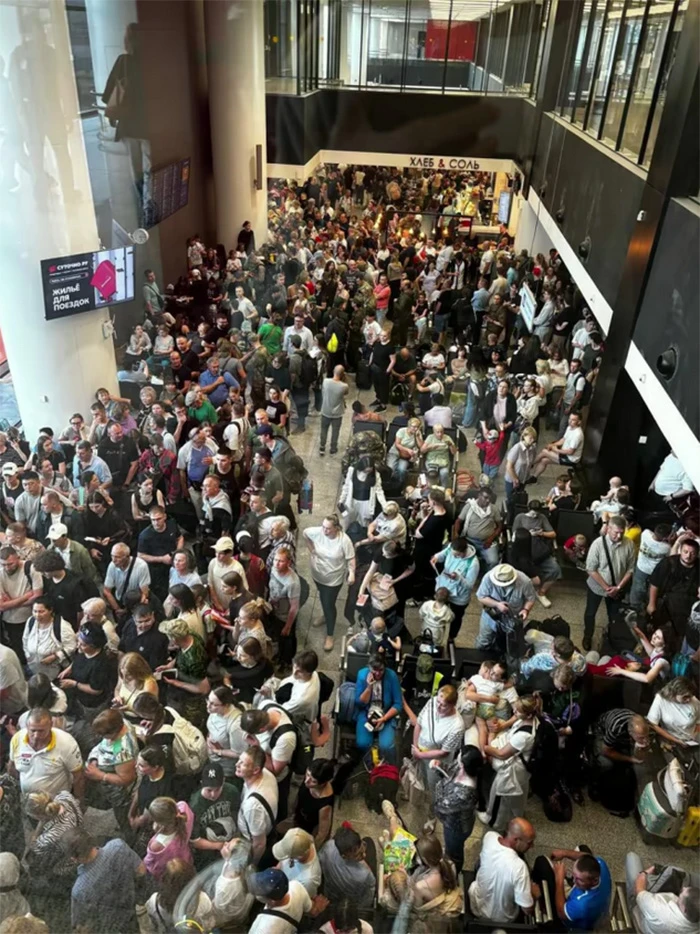 Из-за опасности беспилотных атак 5 июля в России была отменена часть рейсов в аэропортах. Из-за этого все графики корректируют, из-за чего в аэропортах коллапс и новые задержания.