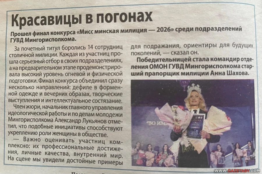 Речь идет об Анне Шаховой, победительнице конкурса красоты «Мисс минская милиция – 2026». Известно, что в 2020 году она участвовала в разгоне протестов. А, благодаря «Киберпартизанам», также известно, что в свое время коллеги приняли ее назначение в штыки.