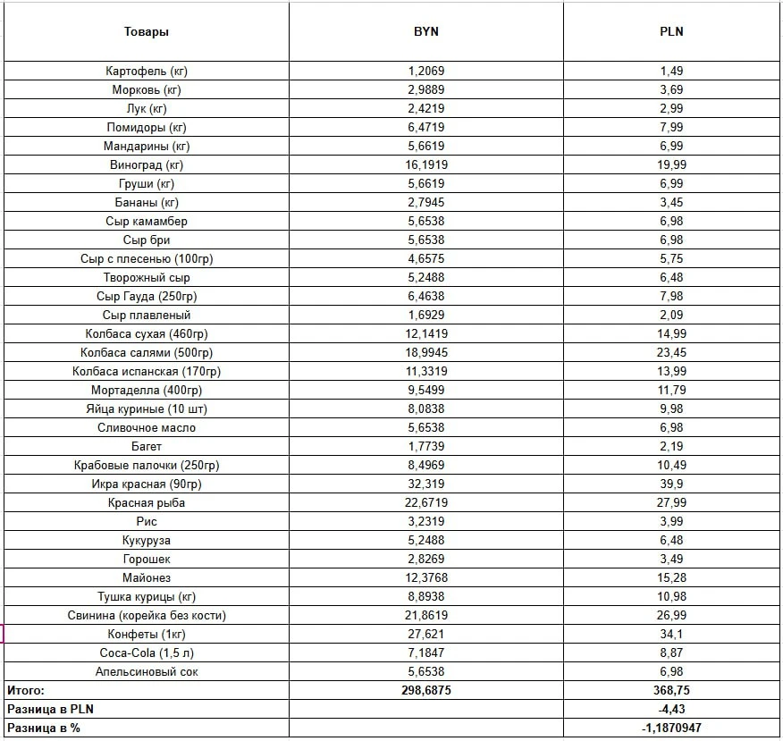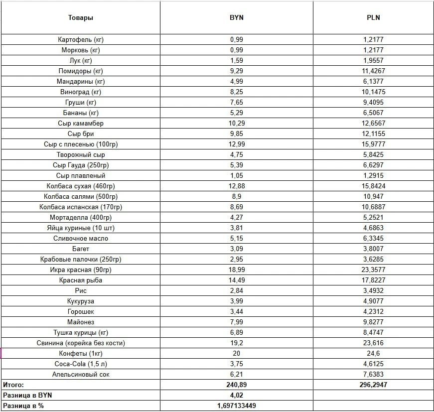 Где дешевле? Традиционно, сравниваем новогоднюю корзину в Минске и Варшаве