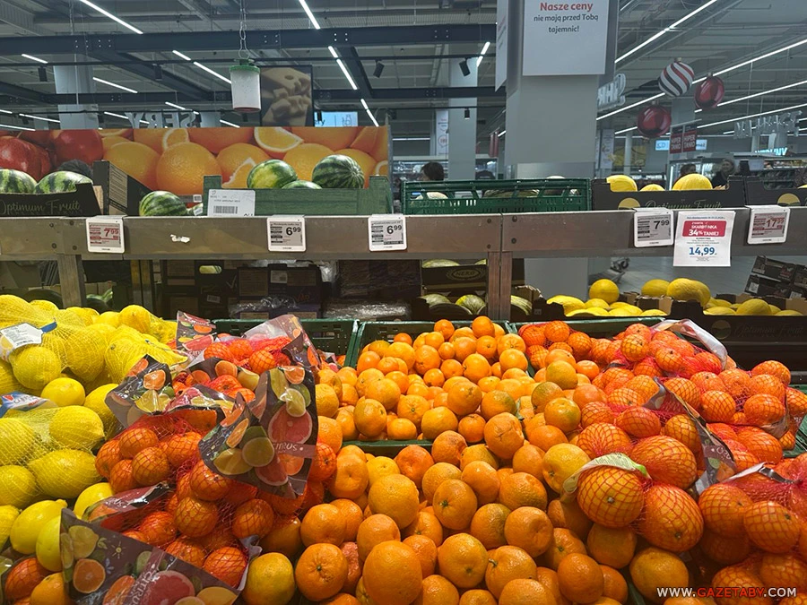 Значительно подорожали мандарины — сейчас кладем в корзину килограмм за 6,99 злотых (5,6 руб.), хотя в прошлом году они нам обошлись в 4,48.