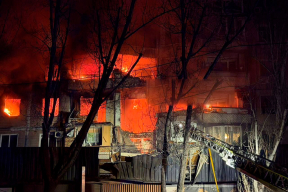 - Ночью была совершена атака российских дронов на Киев. Как сообщают местные власти, в Соломенском районе произошло падение обломков, в результате на месте возник пожар – загорелся жилой дом, магазин, автомобили, минимум шесть человек пострадали.