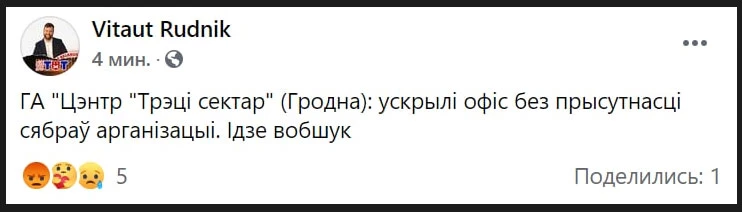 Также, как сообщает Наша Ніва, сейчас идет обыск у директора правозащитной организации Lawtrend Ольги Смолянко. Про это она успела сообщить в соцсетях.
