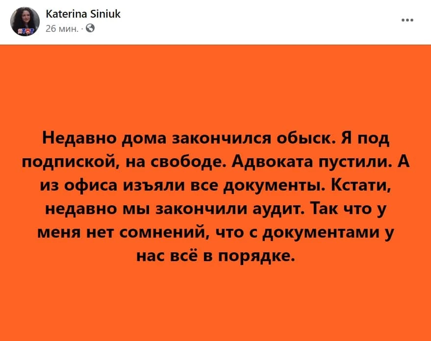 Основательница «Имен» Катерина Синюк сообщила о том, что обыск у нее закончился: