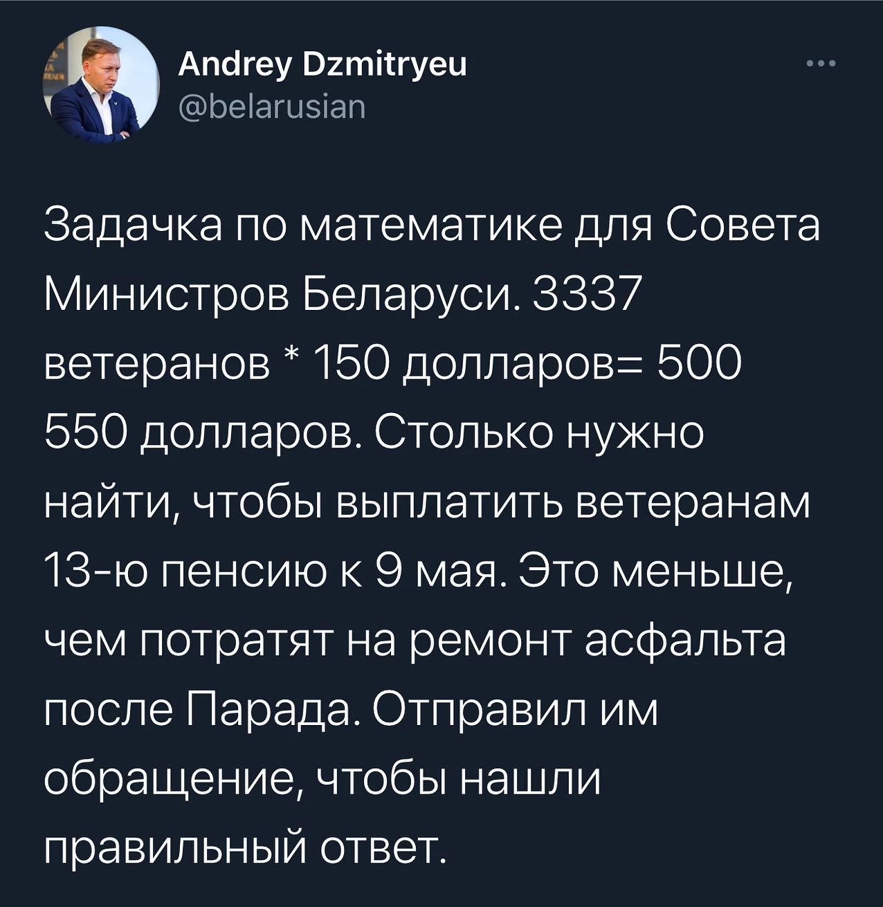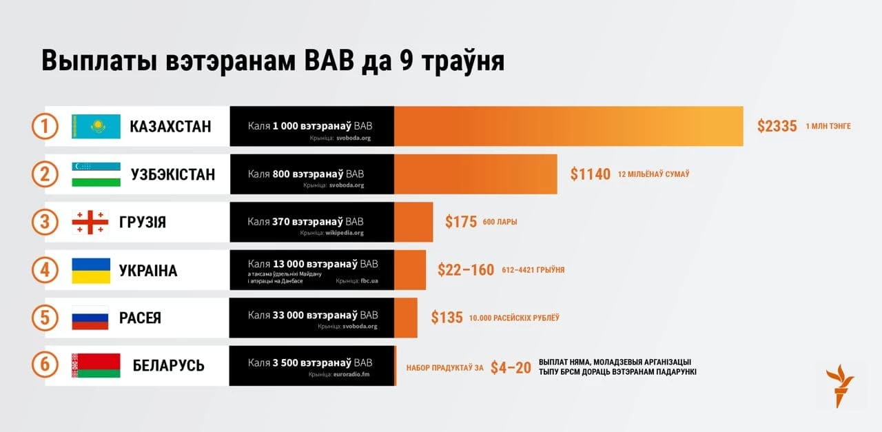«В Украине ветераны получат выплаты, в России получат, в Казахстане получат... А в Беларуси нет. Этим всё сказано о руководстве этих стран».