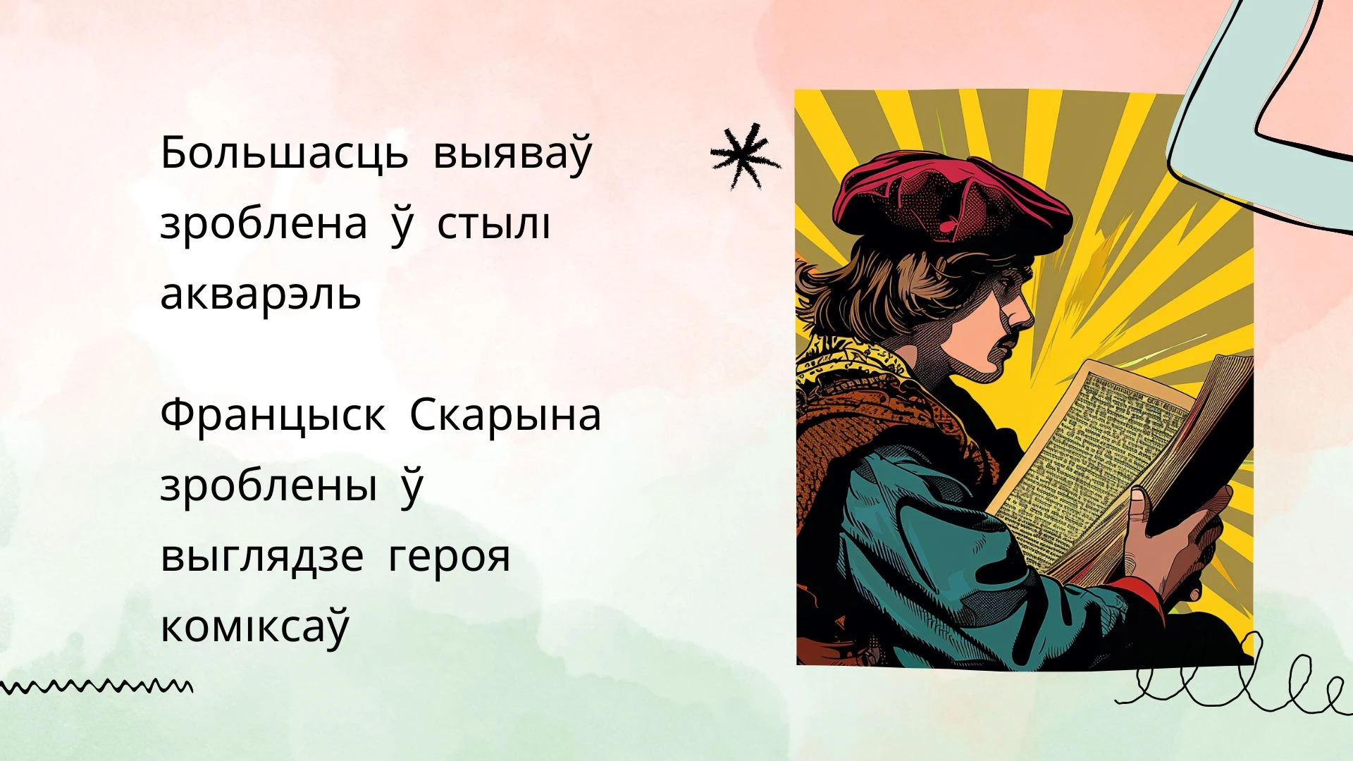 — Мы далі дзецям выбар, каб яны маглі візуалізаваць гісторыю Беларусі ў той форме, якая ім зразумелая і цікавая. І, вывучаючы розныя мастацкія стылі ў нейраілюстраванні, дзеці галасавалі за тое, якім будзе мультфільм пра Скарыну. Хтосьці быў за дыснэеўскі стыль і анімэ, але большасць удзельнікаў выказаліся за «comic style». Калі шчыра, мы не чакалі такіх вынікаў, — дадае Аляксандра.