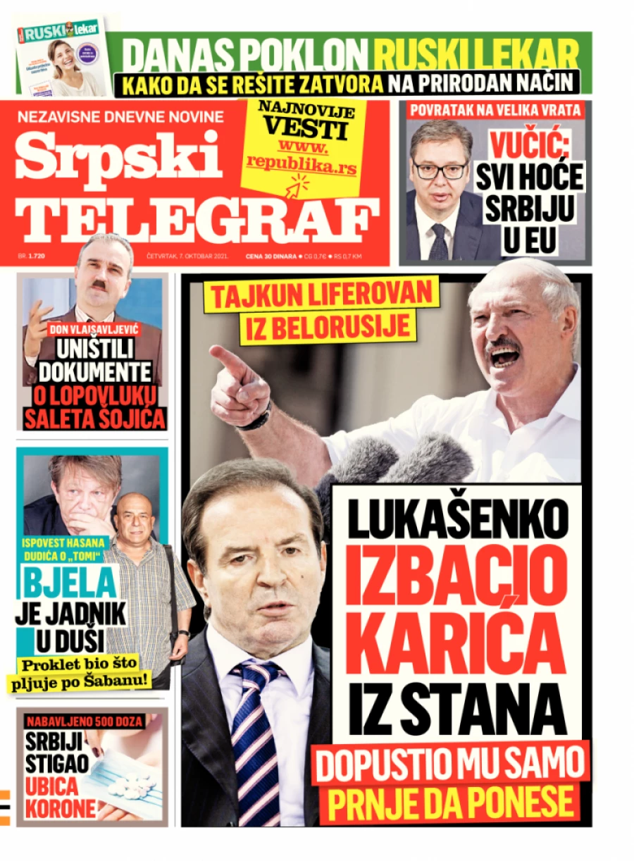 «Лукашенко выгнал Карича из квартиры, позволил ему только забрать вещи!». С таким заголовком вышло сербское издание «Srpski Telegraf». Жена магната, Миланка Карич, выступила с опровержением.