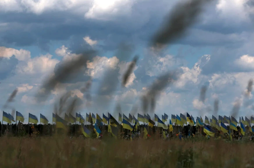 Вид на кладбище перед церемонией прощания с Евгением Храпко — боевым медиком и инструктором тактической медицины, который погиб 11 июня. Как пишут украинские СМИ, Храпко спас сотни жизней.