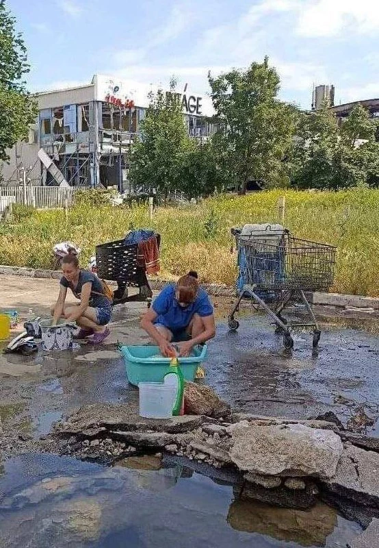 Очередь за водой в Лисичанске. В городе от постоянных обстрелов повреждено водоснабжение.