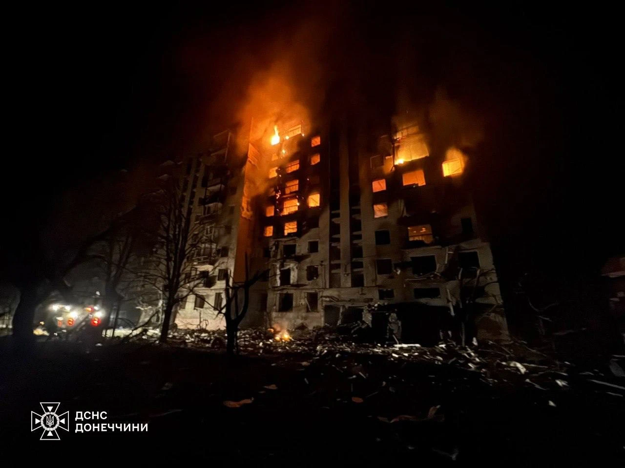 Последствия обстрела Покровска. Повреждены три многоэтажки, сообщает ОВА.