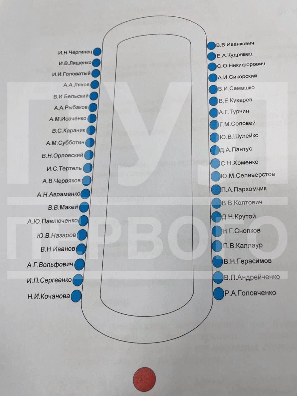 Посадка на совещании. Лукашенко обозначен красной точкой. Фото «Пул первого»